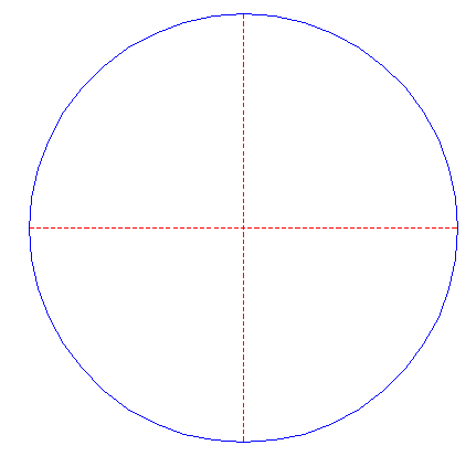 | Draw a circle. Draw the horizontal and vertical centerlines.