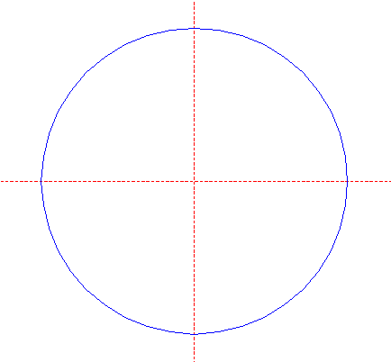 | Draw a circle. Draw and extend the horizontal and vertical centerlines.