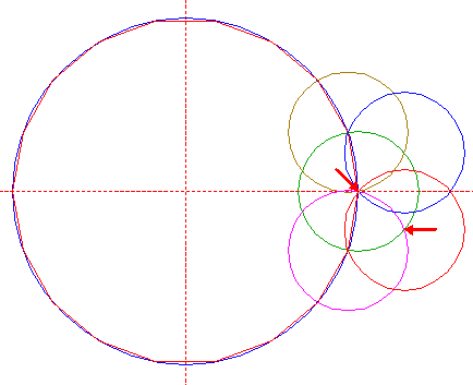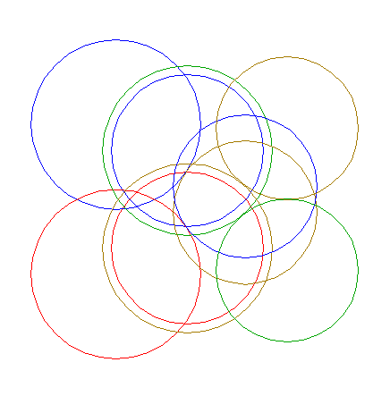 | Construct a circle centered at the righthand intersection of circles 3 and 4, passing through the center of circle 3.