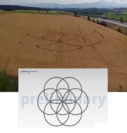 another, a perfect Hexagram in the Flower of Life, in a field with the
