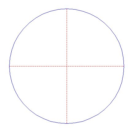 | Draw a circle. Draw the horizontal and vertical centerlines.