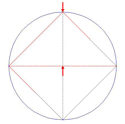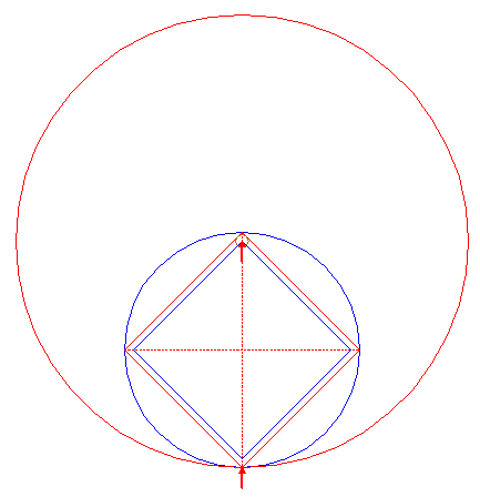 | Construct the inscribed square of circle 1, pointing up.
