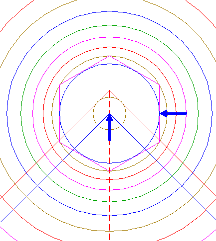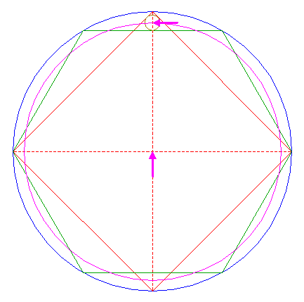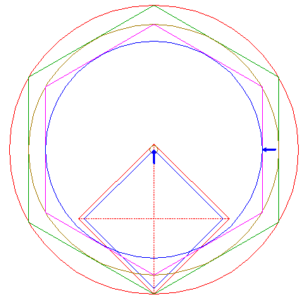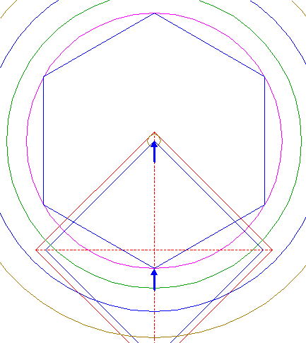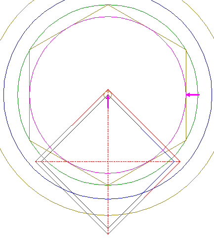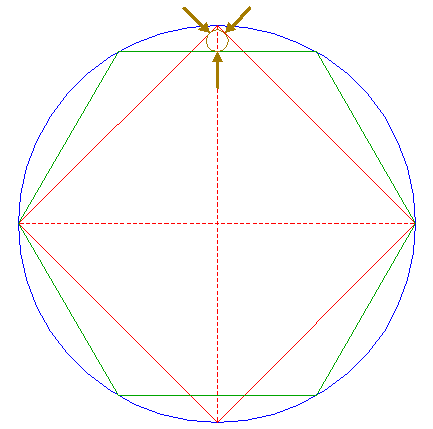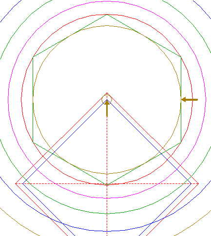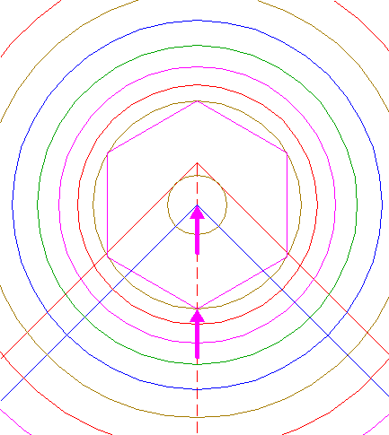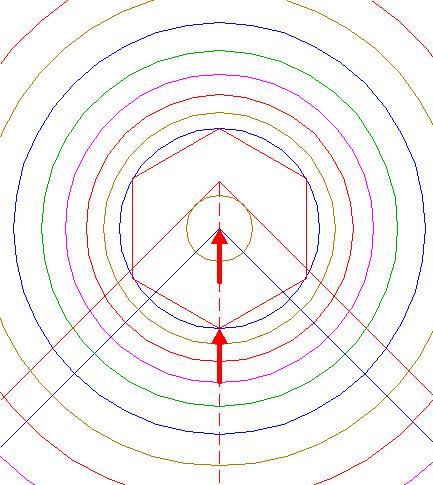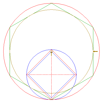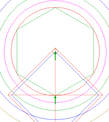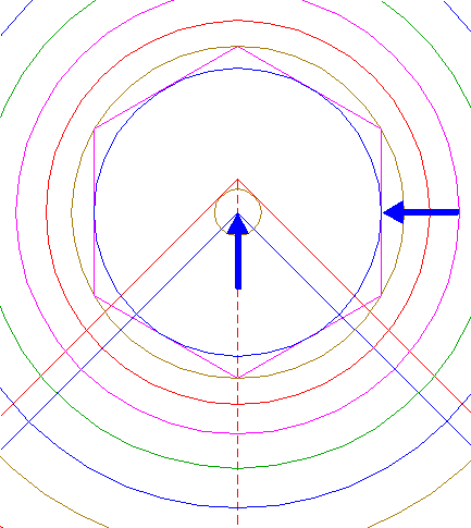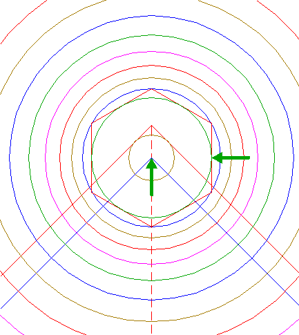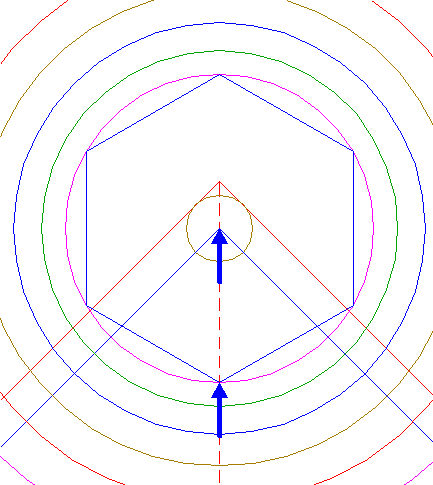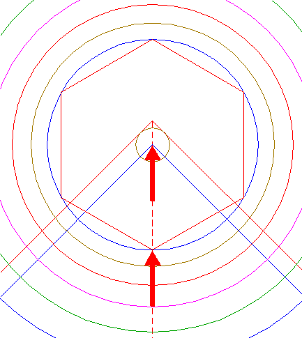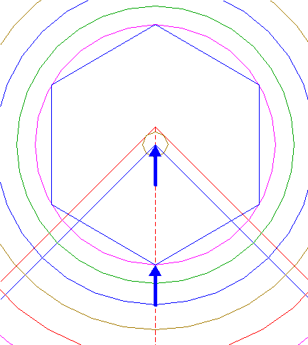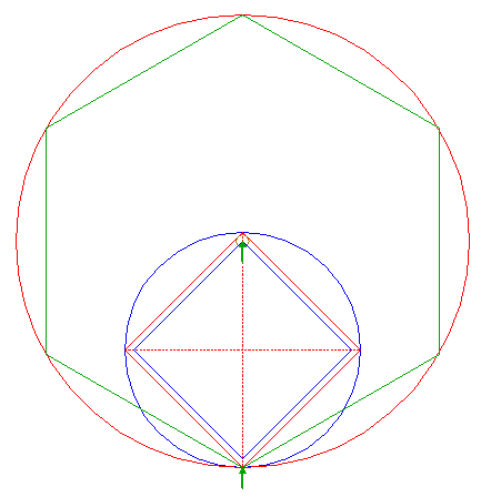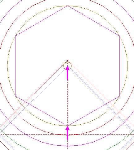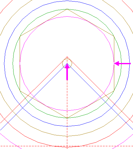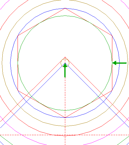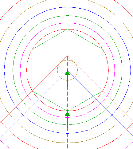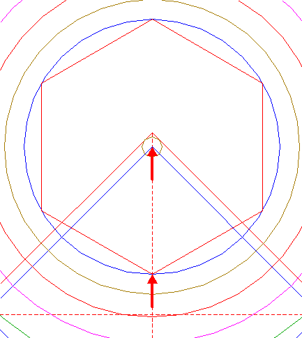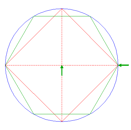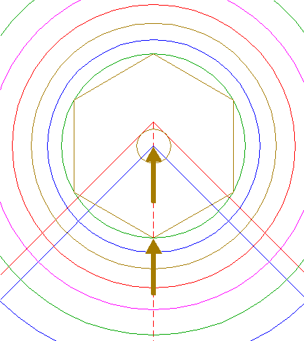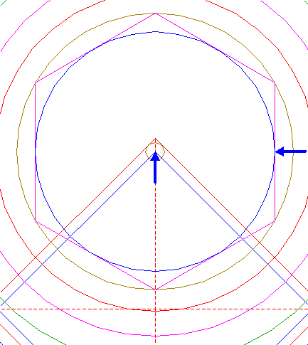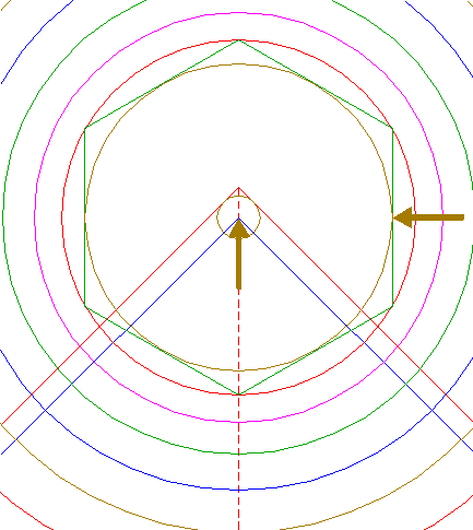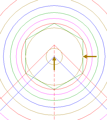 | Construct the inscribed hexagon of circle 13, pointing down.