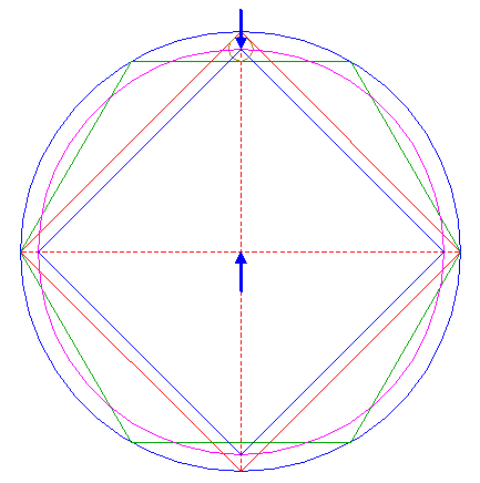 | Construct the inscribed square of circle 5, pointing up.