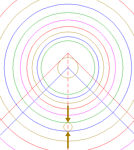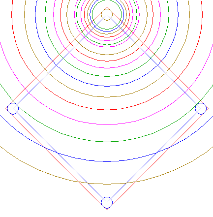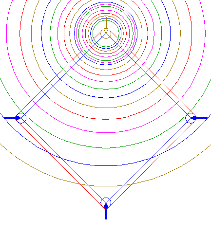 | Construct the "two-points" (defined by the two end-points of a centerline) circle between the lower intersections of circles 31 and 33 with the vertical centerline.