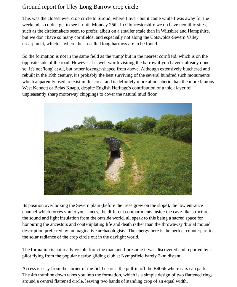 Hetty Pegler's Tump Long Barrow, Nr Nympsfield, Gloucestershire. Reported 24th June.