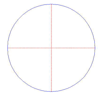 | Draw a circle. Draw the horizontal and vertical centerlines.
