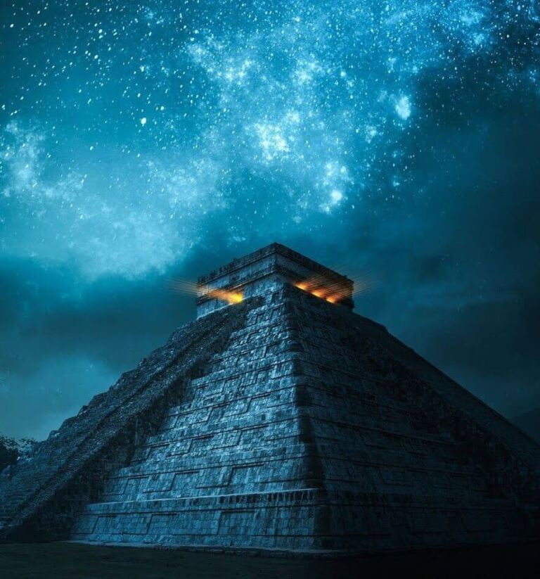 the magnificent Pyramid of Kukulkan in Mexico has 3+3+3 layers of ascent