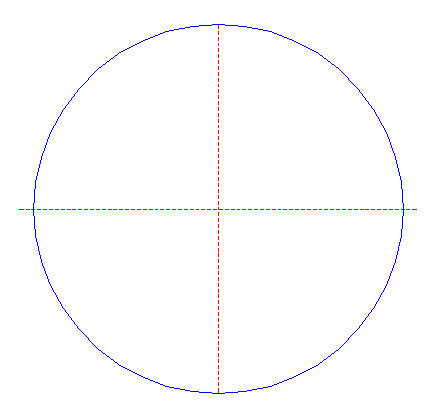| Draw a circle. Draw and extend the horizontal and vertical centerlines.