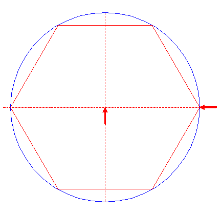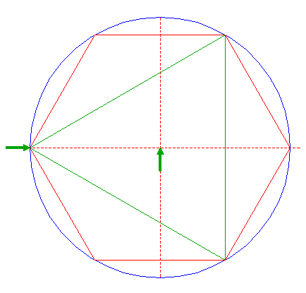 | Construct the inscribed hexagon of circle 13, pointing to the right.