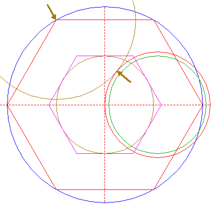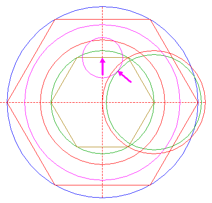 | Copy circle 7 to the lower righthand angular point of hexagon 14.