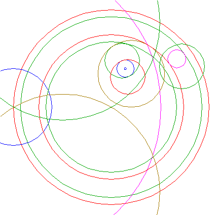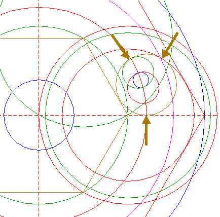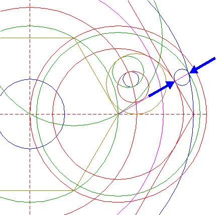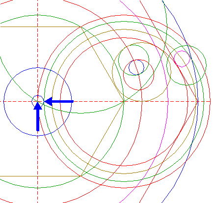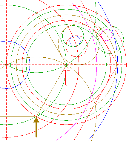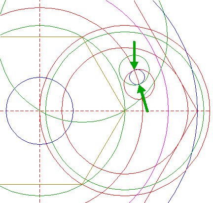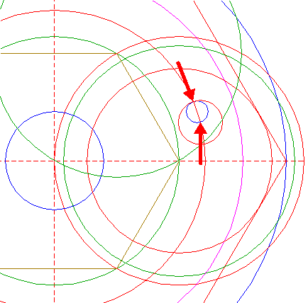 | Draw the connecting line between the center of circle 1 and the righthand intersection of circles 10 and 18.