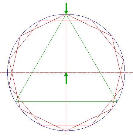 | Construct the inscribed equilateral triangle of circle 12, pointing up.