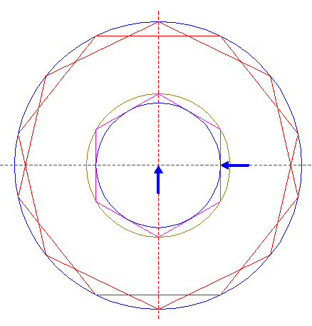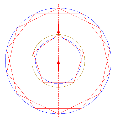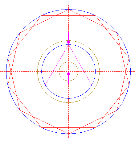 | Construct two inscribed heptagons of circle 16, one pointing up, one pointing down.