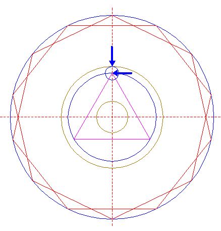 | Copy circle 11 to the upper intersection of circle 1 and the vertical centerline.