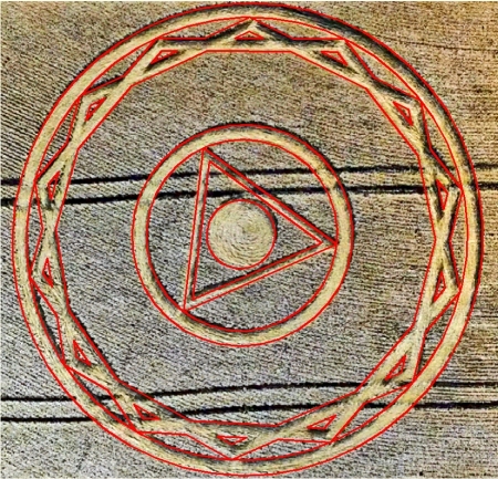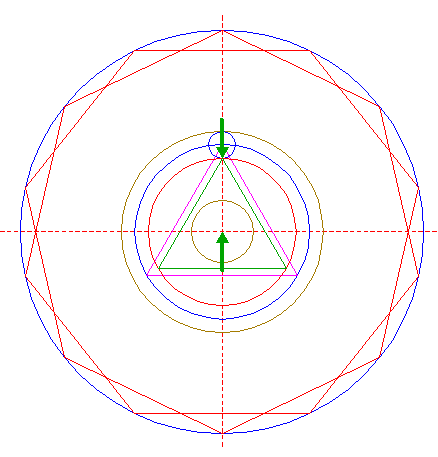 | Construct the inscribed equilateral triangle of circle 6, pointing up.