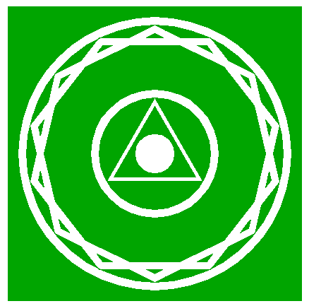 | Construct two inscribed heptagons (regular 7-sided polygons) of circle 1, one pointing up, one pointing down.