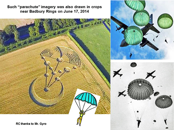 “parachute” imagery was also drawn in crops near Badbury Rings on