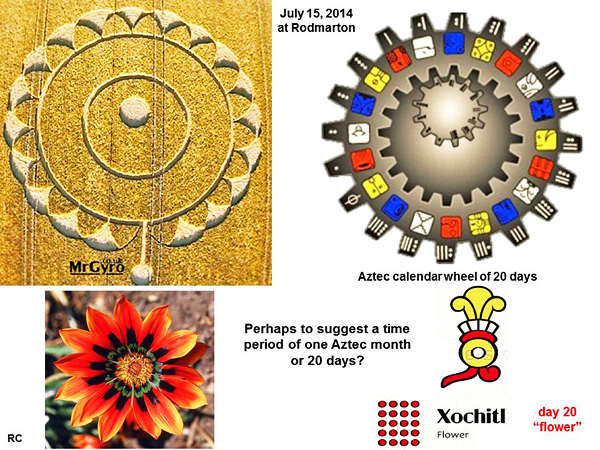 the approximate fashion of an "Aztec calendar wheel". Any Aztec