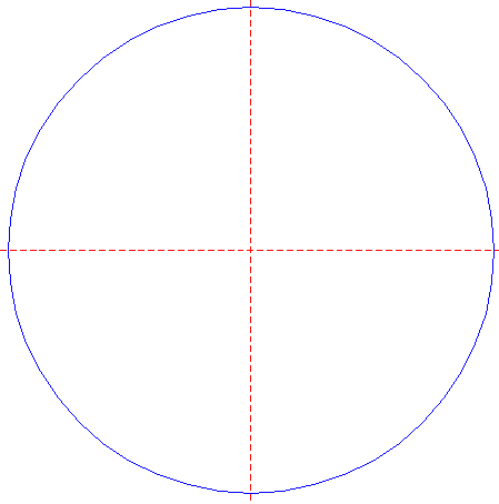 | Draw a circle. Draw and extend the horizontal and vertical centerlines.