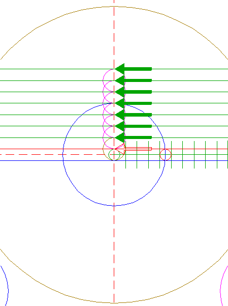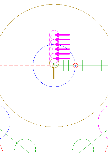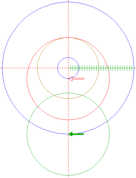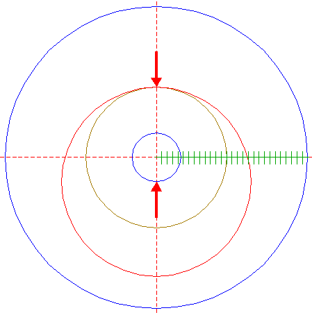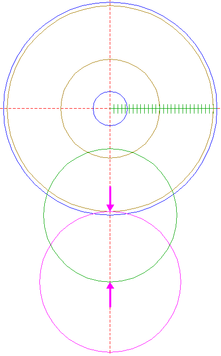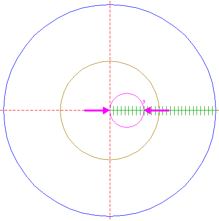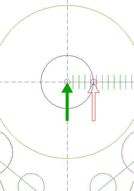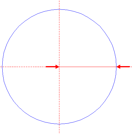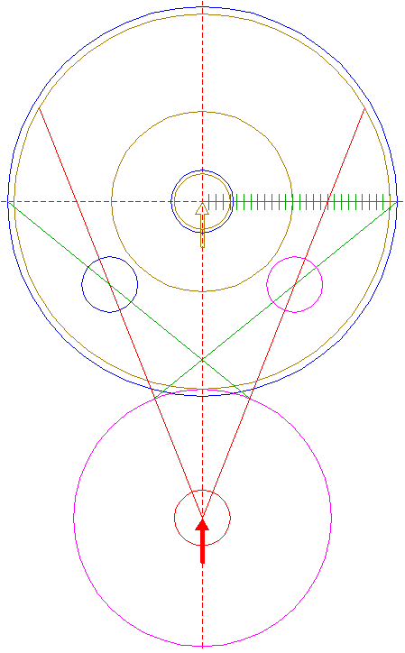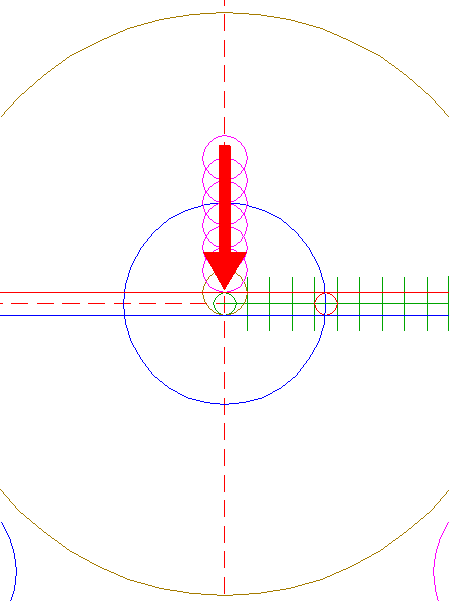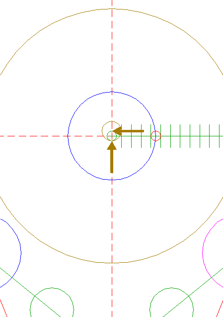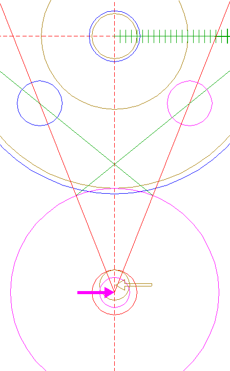 | Construct a "two-points" circle between the center of circle 6 and its righthand intersection with the horizontal centerline.