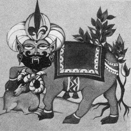 has two horns and is the archetype of Krampus and Saturn Claus. With