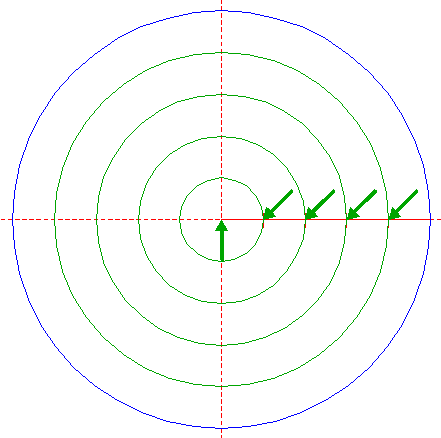 3. | ![]() | Construct four circles concentric to circle 1, passing through division nodes 2. |