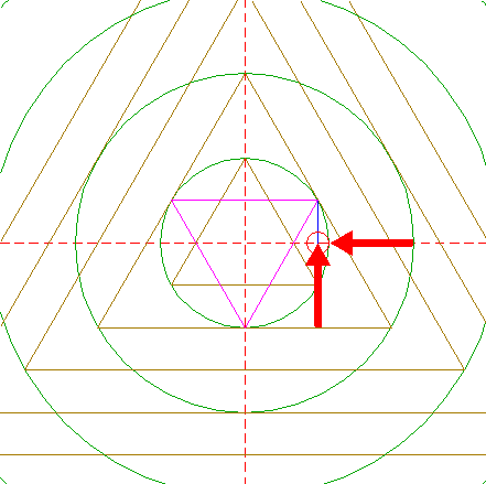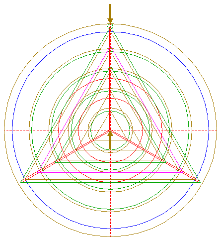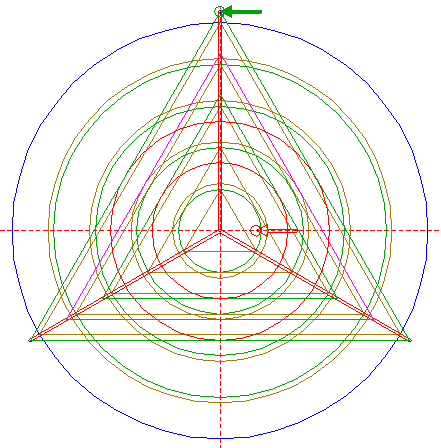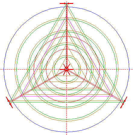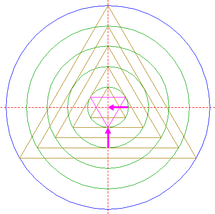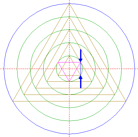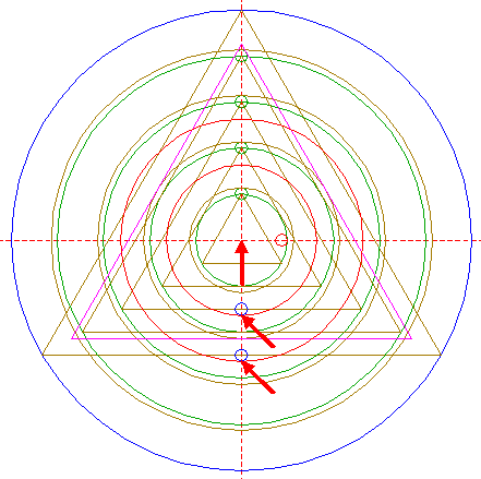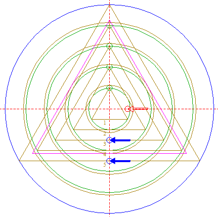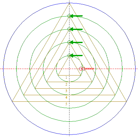 5. | ![]() | Construct the inscribed equilateral triangle of innermost circle 3, pointing down. |