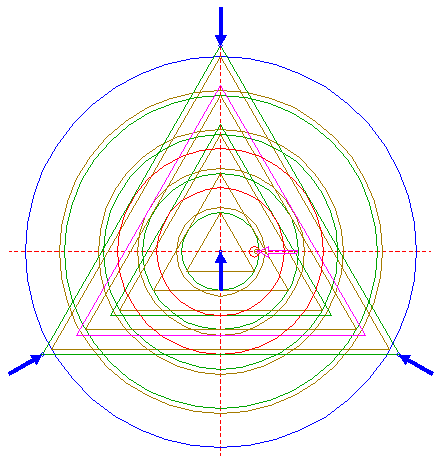 16. | ![]() | Copy circle 15 four times, to the center of circle 1, and to the angular points of outermost triangle 13. |
