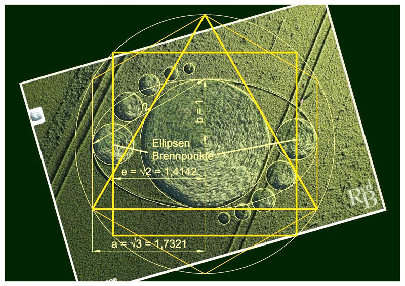 Der Kornkreis beruht im Prinzip auf der Geometrie des gleichseitigen