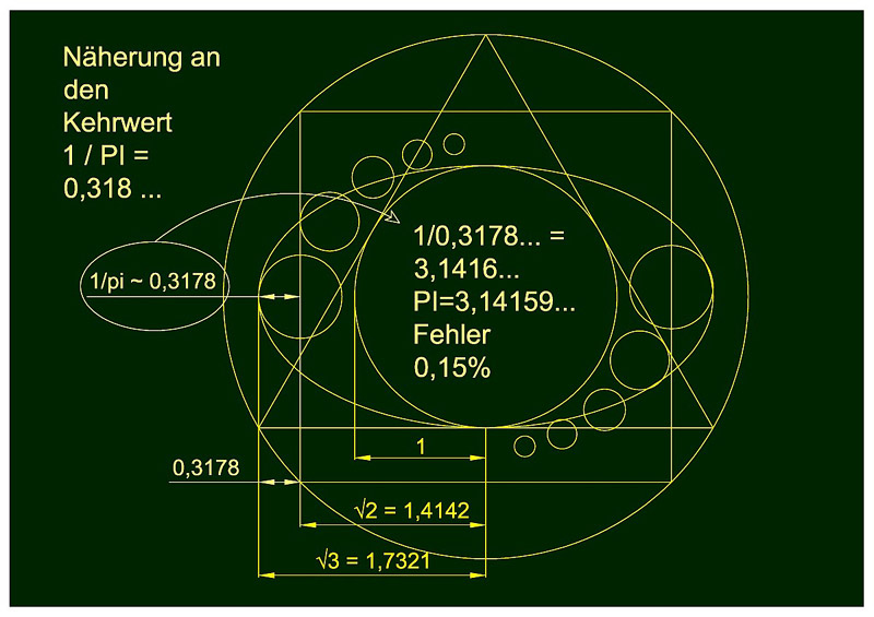der kreiszahl (1/PI). Dabei dient der Radius des zentralen Kreises
