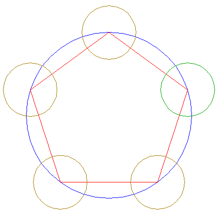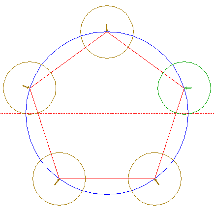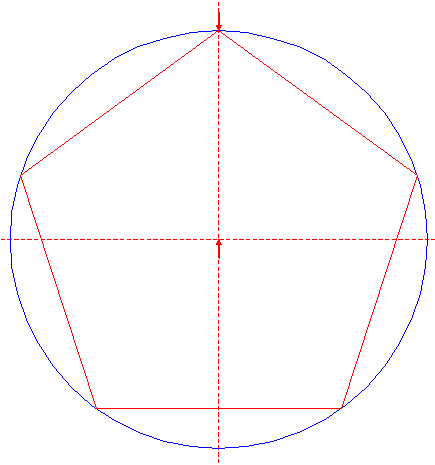2. | ![]() | Construct the inscribed pentagon (regular 5-sided polygon) of circle 1, pointing up. |
