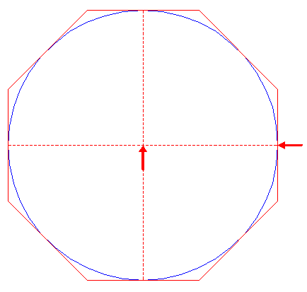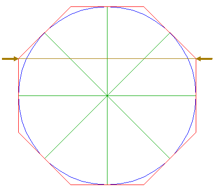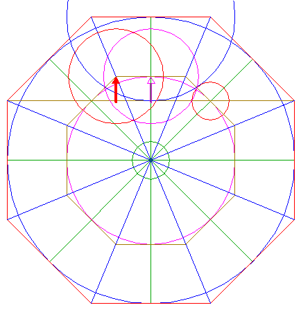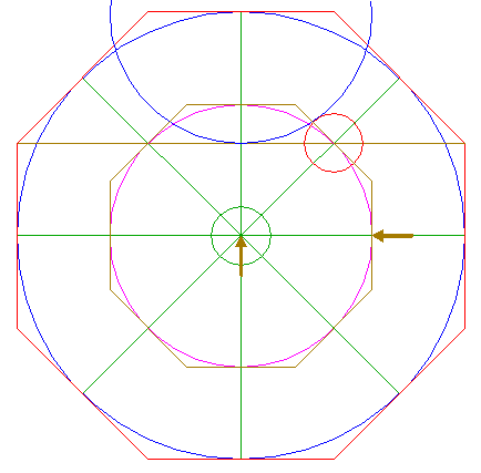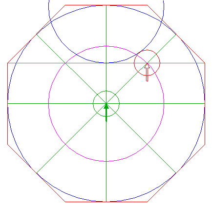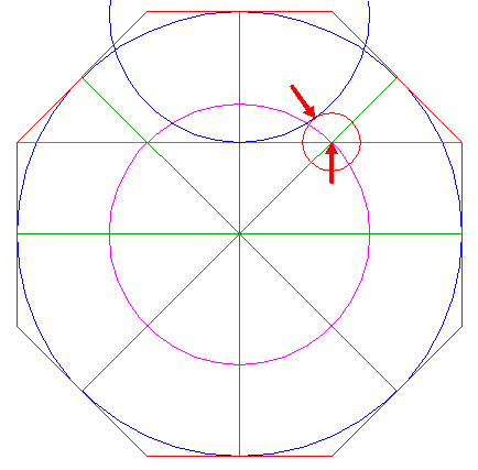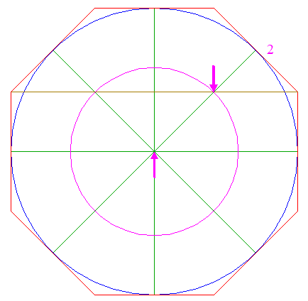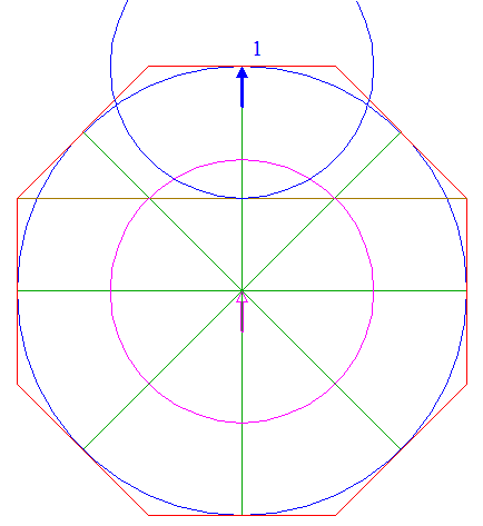 2. | ![]() | Construct the circumscribed octagon (regular 8-sided polygon) of circle 1, with the mid-point of a side on the horizontal centerline. |