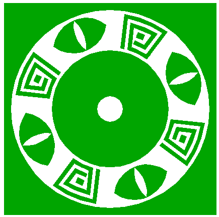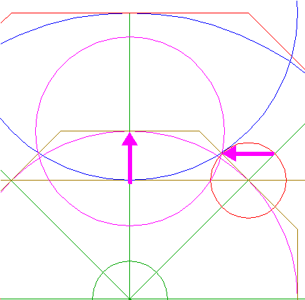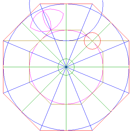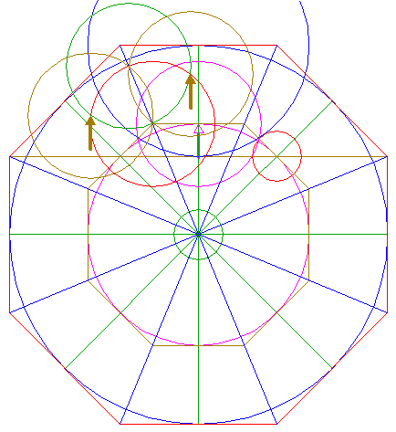 10. | ![]() | Construct a circle centered at the mid-point of the upper side of octagon 9, passing through the upper lefthand intersection of circle 7 and the upper righthand side of octagon 9. |