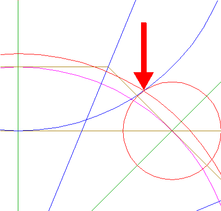 31. | ![]() | Copy circles 23 and 25 to the intersection (tangent point) of circle 27 and line 29. |