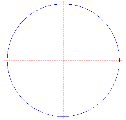 | Draw a circle. Draw and extend the horizontal and vertical centerlines.