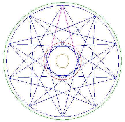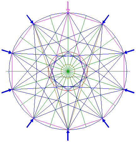 | Copy lines 5 and 6 nine times, by repeating steps 5 and 6 (and the necessary previous steps) with respect to the other angular points of decagon 10.