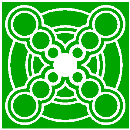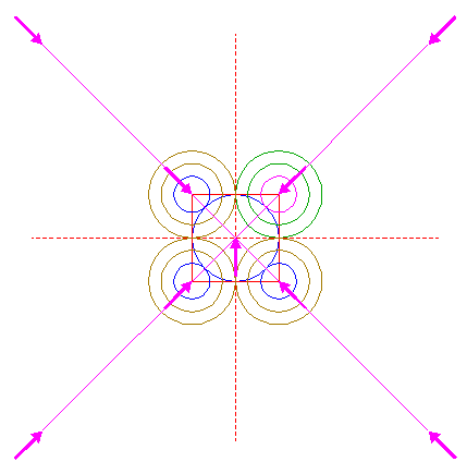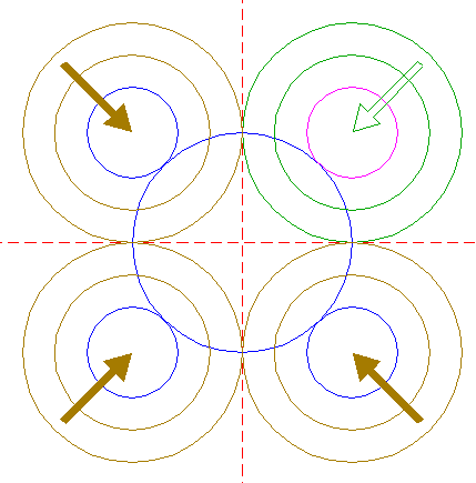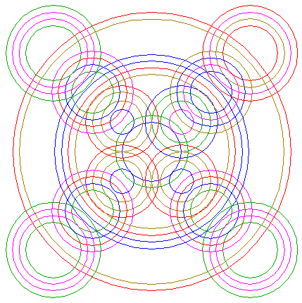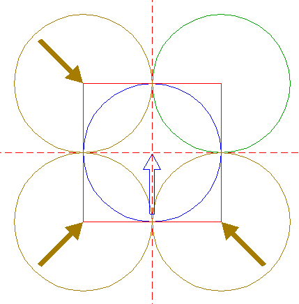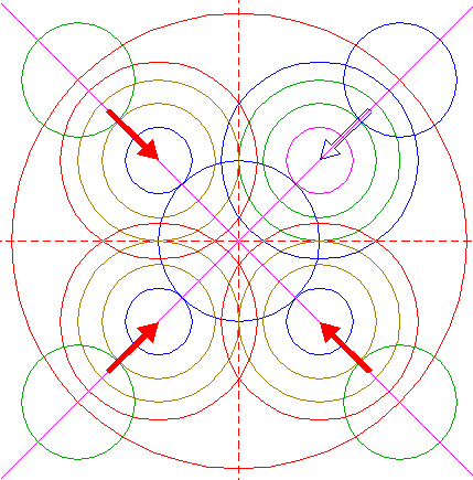 4. | ![]() | Copy circle 1 three more times, to the other angular points of square 2. |