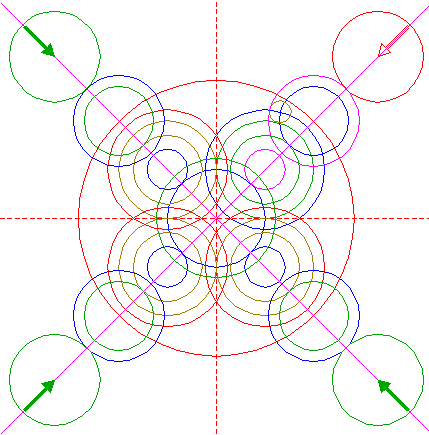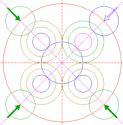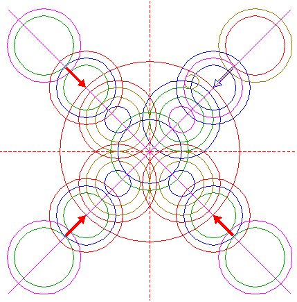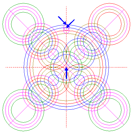 17. | ![]() | Copy circle 16 three times, to the centers of circles 4. |