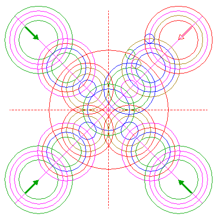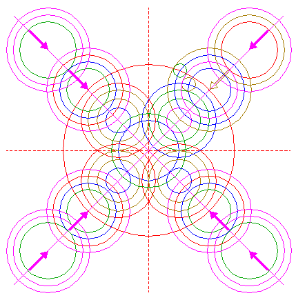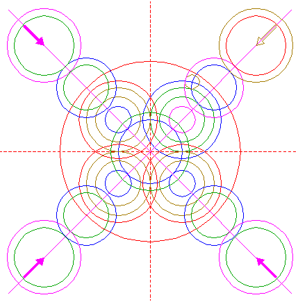 23. | ![]() | Copy circle 22 three times, by repeating step 22 three times with respect to circles 21 and the other rays 10, as shown. |