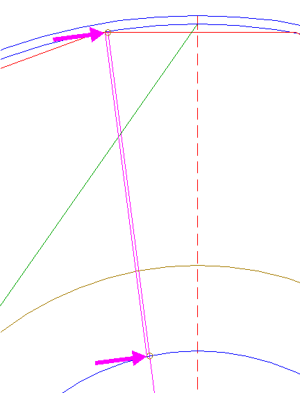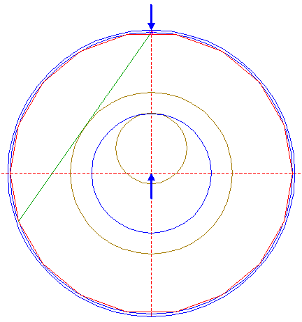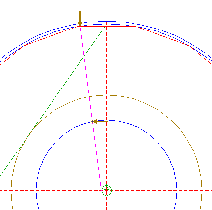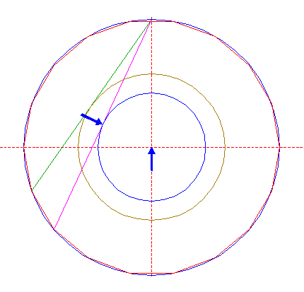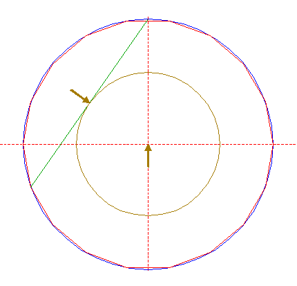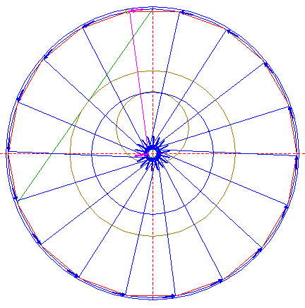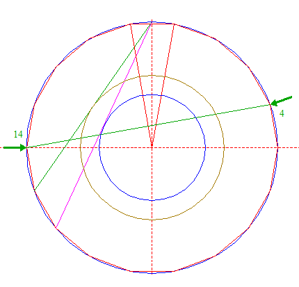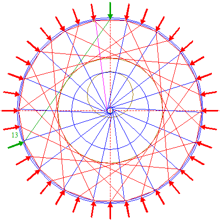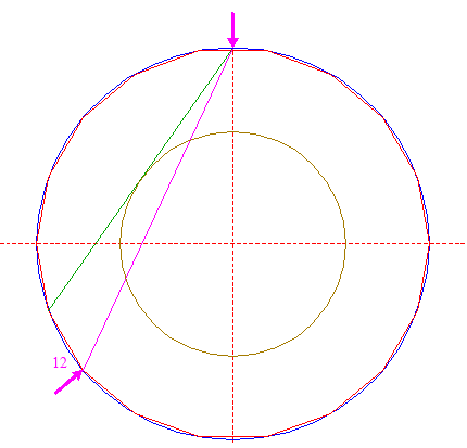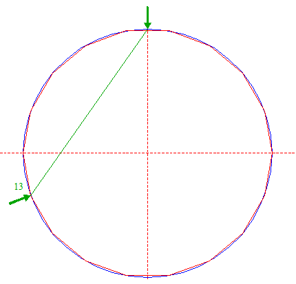 3. | ![]() | Draw the connecting line between angular point (of polygon 2) nr. 13 and the upper intersection of circle 1 and the vertical centerline. |