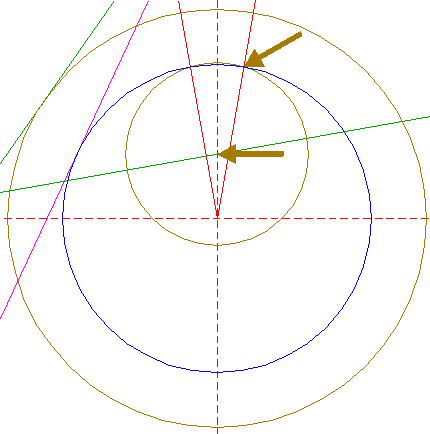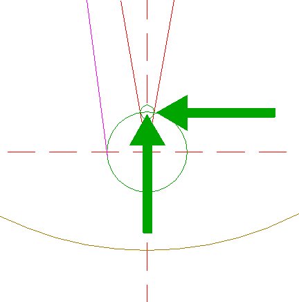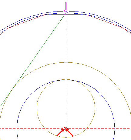 12. | ![]() | Copy circle 10 to the center of circle 1, and move this circle (copy and delete original) to its own lefthand intersection with the horizontal centerline. See detail. |