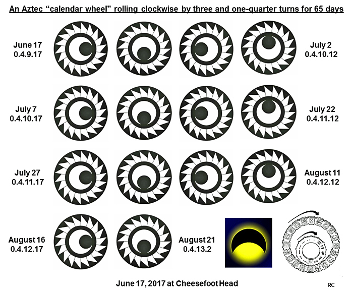 “calendar wheel” with 20 days per 360o turn “rolls along” the