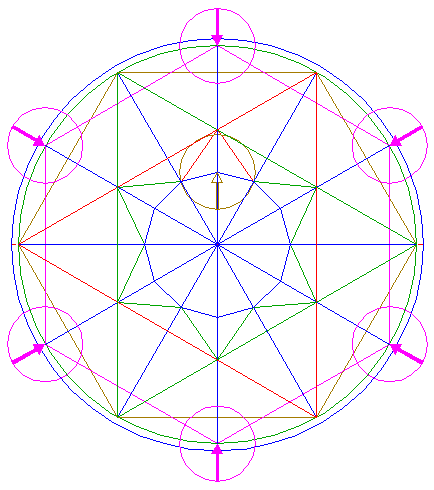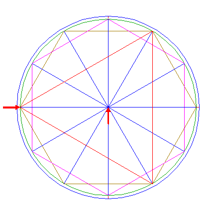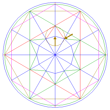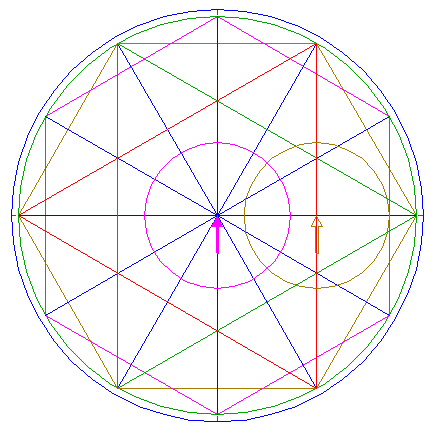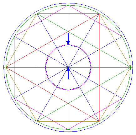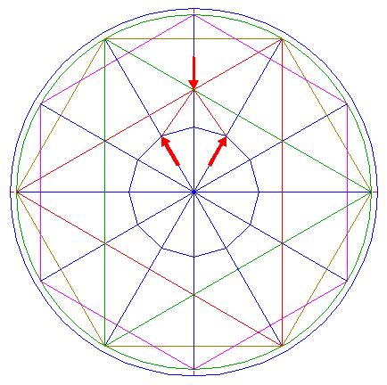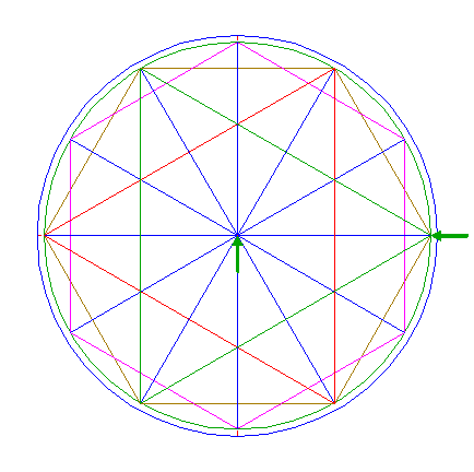 2. | ![]() | Construct the inscribed dodecagon (regular 12-sided polygon) of circle 1, pointing up. |