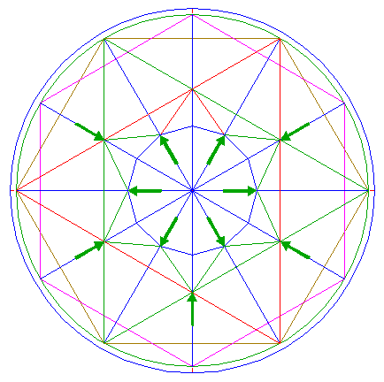 11. | ![]() | Construct the inscribed dodecagon of circle 10, pointing up. |