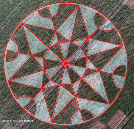 12. | ![]() | Draw two lines, from the upper intersection of triangles 7 and 8 to the upper lefthand and righthand angular points of dodecagon 11. |