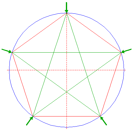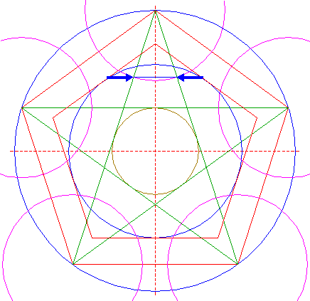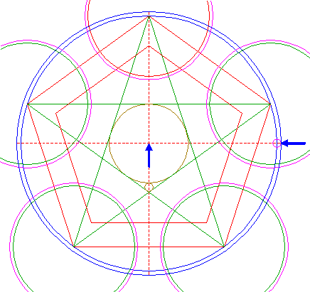 8. | ![]() | Construct the inscribed pentagon of circle 6, pointing up. |