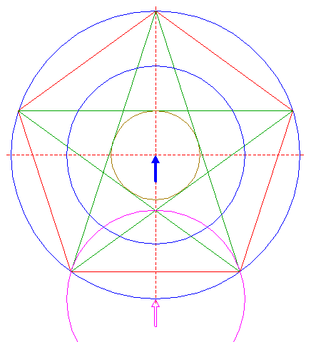 2. | ![]() | Construct the inscribed pentagon (regular five-sided polygon) of circle 1, pointing up. |