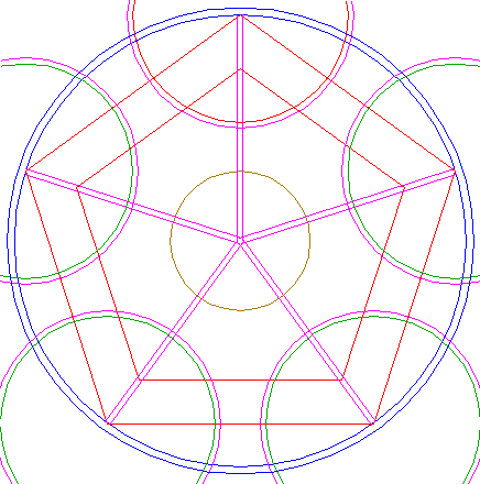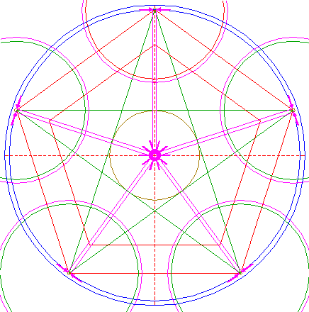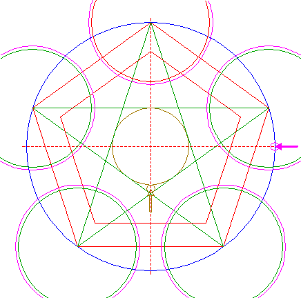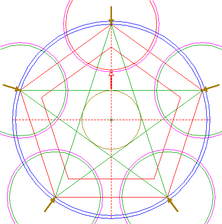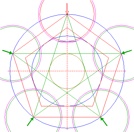10. | ![]() | Copy circle 9 five times, to the angular points of pentagon 2. |