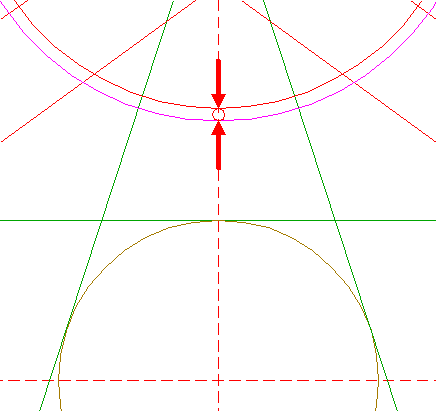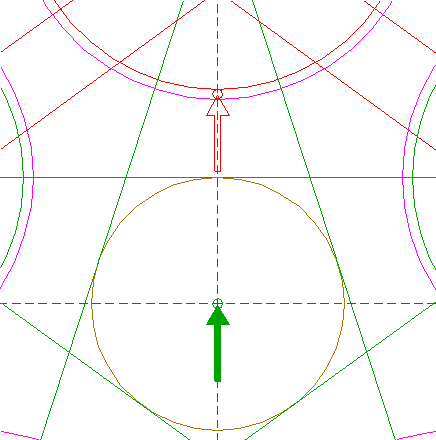 17. | ![]() | Construct the "two-points" circle (defined by the two end-points of a centerline) between the lower intersections of the upper circle 10 and circle 12 with the vertical centerline. |